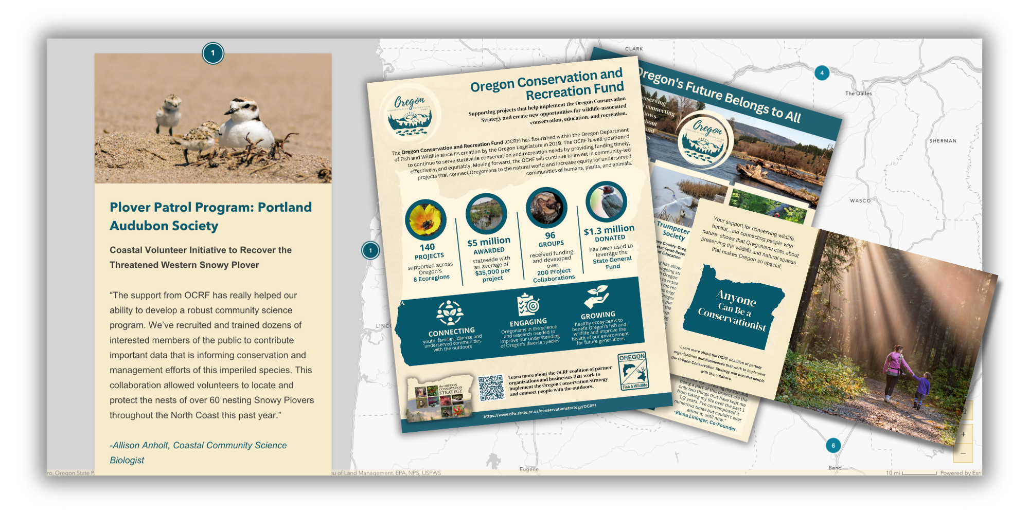 Development of a StoryMap featuring select funded projects and supplemental assets to share the work of the OCRF.